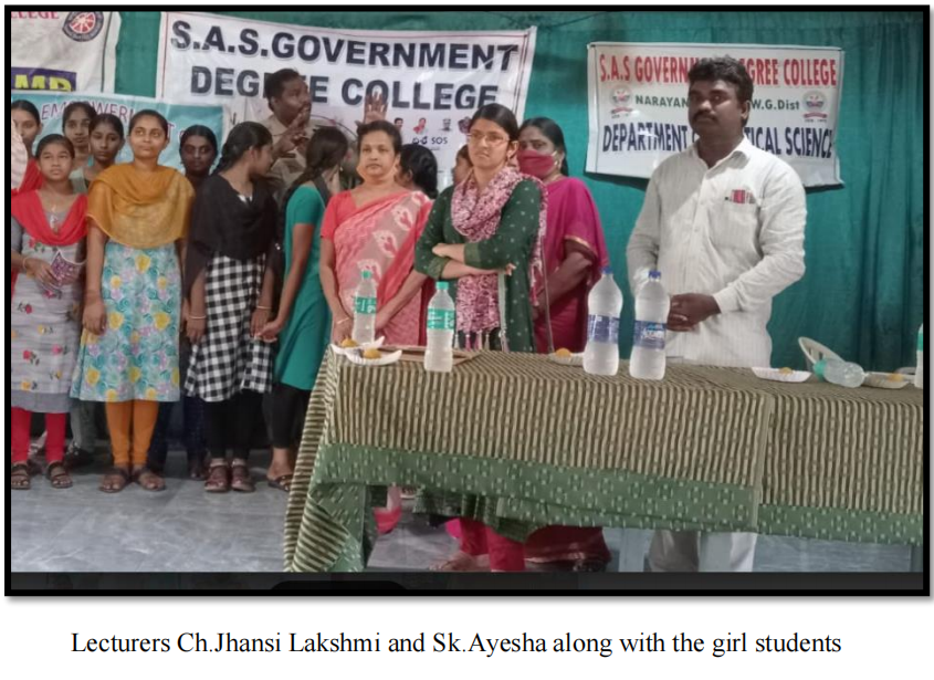 At present, the cell is led by Dr. MSK Krishna Jyothi as the president, with Smt. P. Parvathi and Smt. K.Lavanya serving as members. This committee is dedicated to empowering young women through various programs, including workshops, seminars, and awareness campaigns. These initiatives focus on areas such as education, health, legal rights, and career development, providing girl students with the knowledge and tools needed to navigate challenges and seize opportunities.